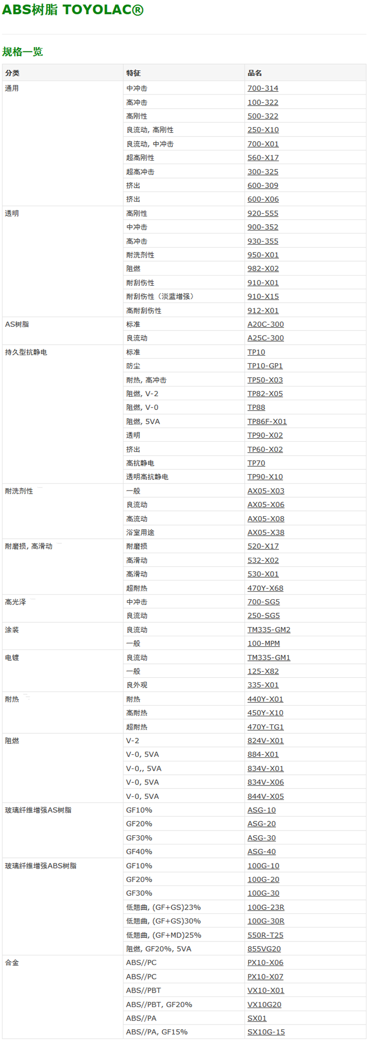 >> 日本東麗Toyolac系列ABS工程塑料