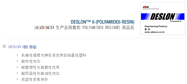 韓國DESCO德詩科DESLON品牌系列尼龍PA6塑膠原料