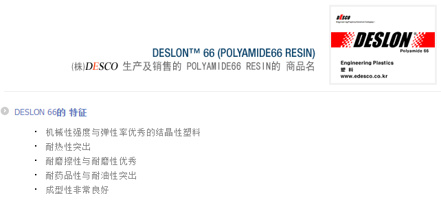 >> 韓國德詩科DESCO品牌DESLON系列尼龍PA66塑膠原料