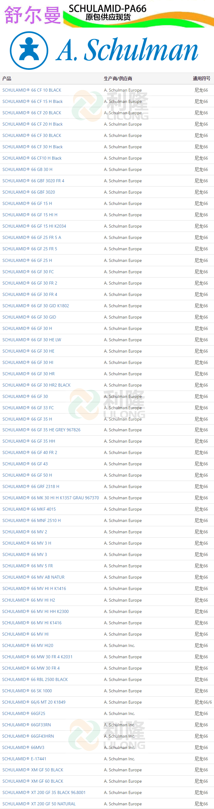 [塑料簡介:]利隆塑料專業(yè)經(jīng)營美國舒爾曼PA66,美國SCHULAMID品牌PA66塑膠原料,想要了解尼龍PA66塑膠原料,舒爾曼PA66原料價格,PA66性能用途,PA66型號和PA66物性的客戶,歡迎來電來函咨詢