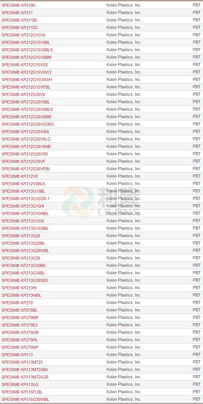 >> 韓國可隆SPESIN品牌系列PBT塑膠原料