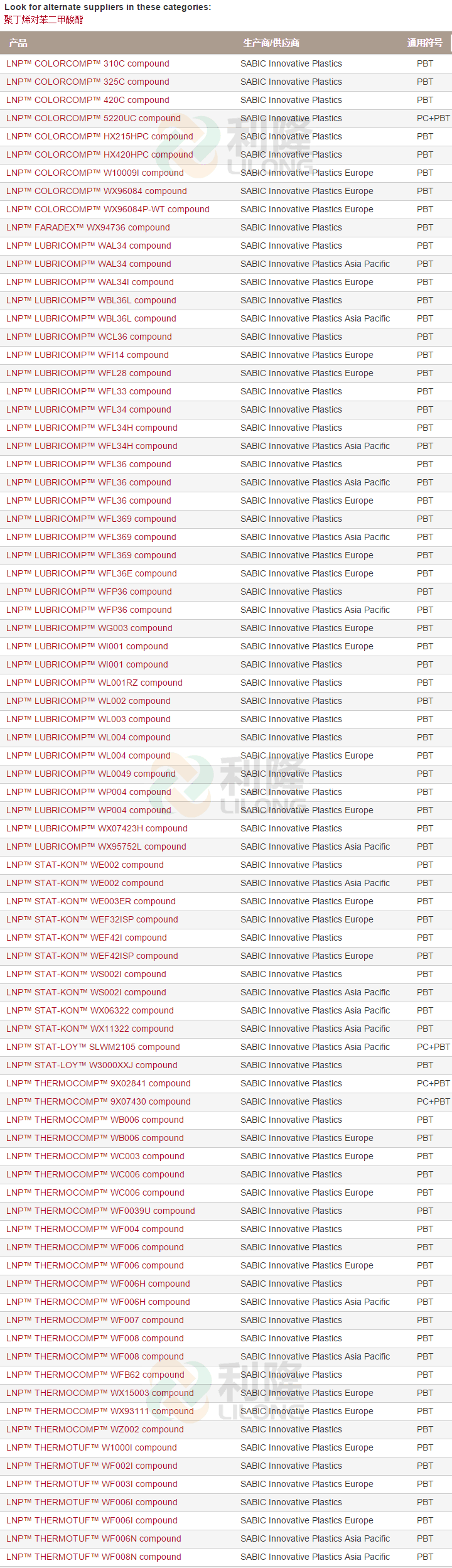 >> 美國沙泊基礎LNP系列PBT塑膠原料