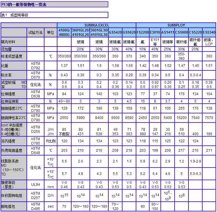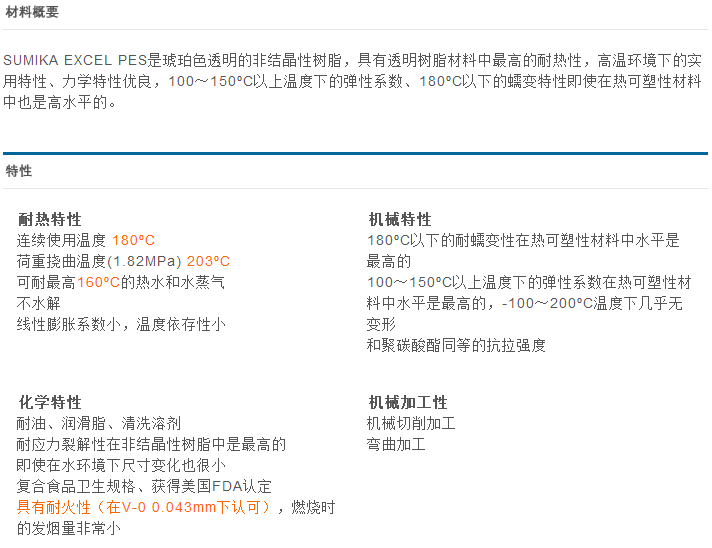 >> 日本住友化學(xué)SUMIKAEXCEL系列聚醚砜PES特種工程塑料
