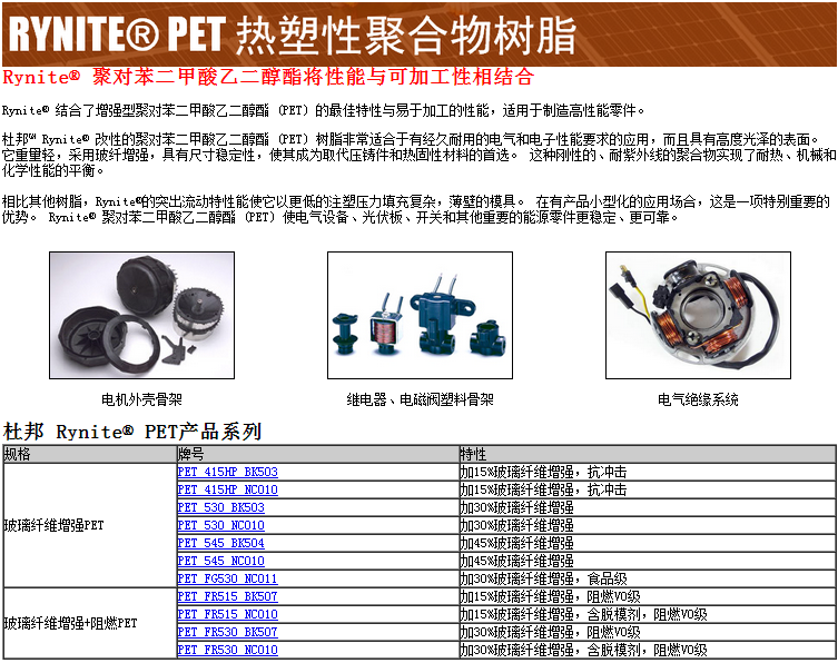 >> 美國(guó)杜邦RYNITE品牌系列PET塑膠原料