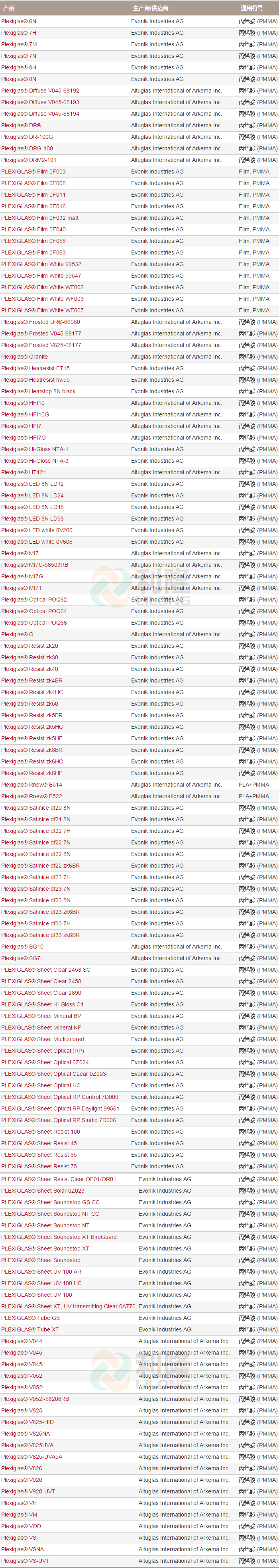法國阿科瑪Altuglas系列品牌PMMA塑膠原料