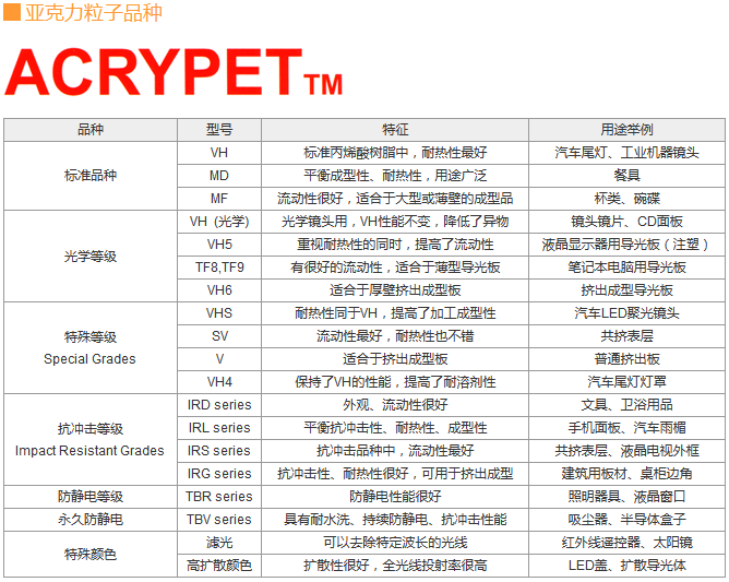 Acrypet VH Mitsubishi Rayon America Inc. Acrylic (PMMA)