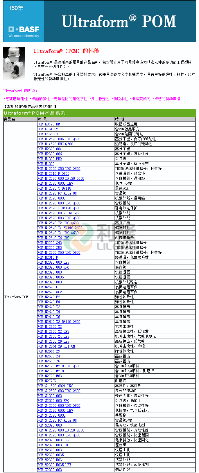 [塑料簡介:]利隆塑料專業(yè)經(jīng)營德國巴斯夫POM聚甲醛ULTRAFORM品牌塑膠原料,想要了解聚甲醛POM塑膠原料,巴斯夫POM價格,POM性能用途,POM型號和POM物性的客戶,歡迎來電來函咨詢